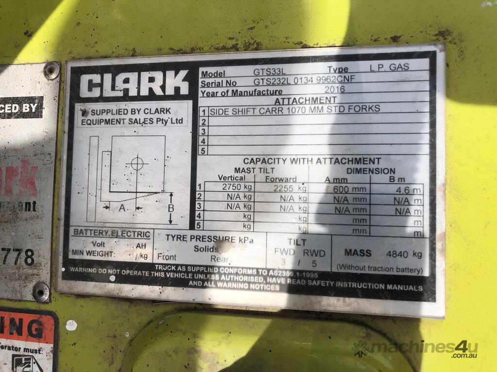 Container Access Robust 3.3t LPG CLARK Forklift : $21,400 AUD ($23,540 Inc. GST)